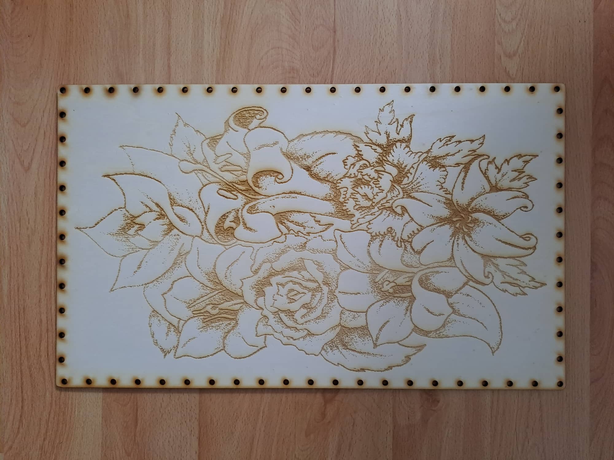 - Preglejkové dno na opletanie gravírované obdĺžnik 4mm - 50x30cm Kvety