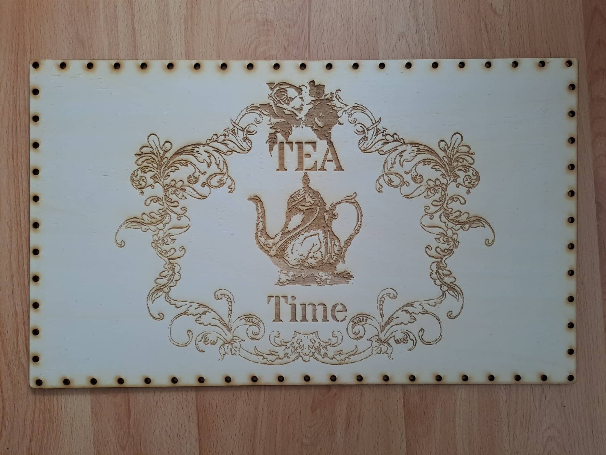 - Preglejkové dno na opletanie gravírované obdĺžnik 5mm - 50x30cm Tea Time