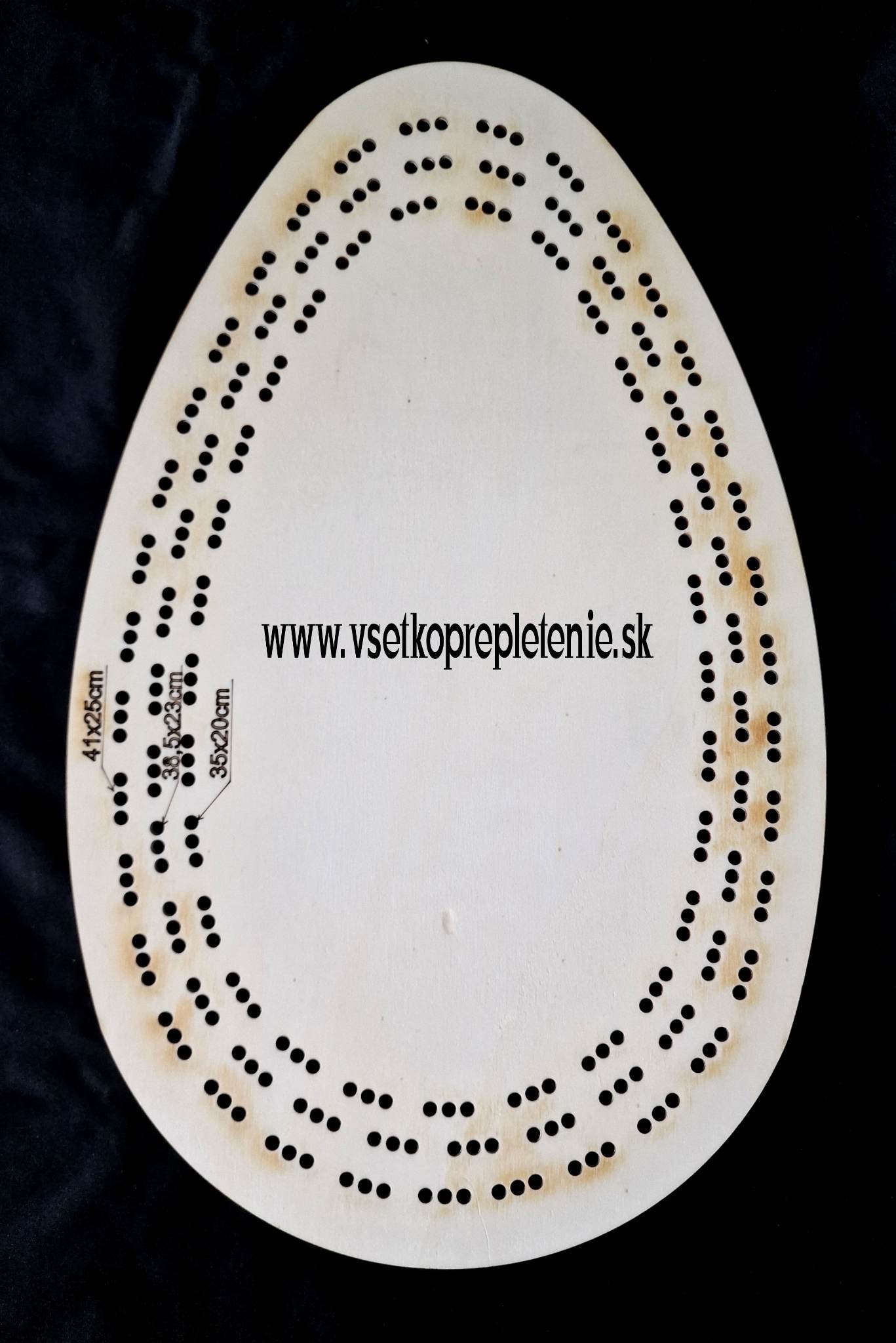 Šablona na vrkočový venček VAJCE. Má tri možnosti pletenia veľkosti vajca 41x25cm, 38,5x23cm, 35x20cm