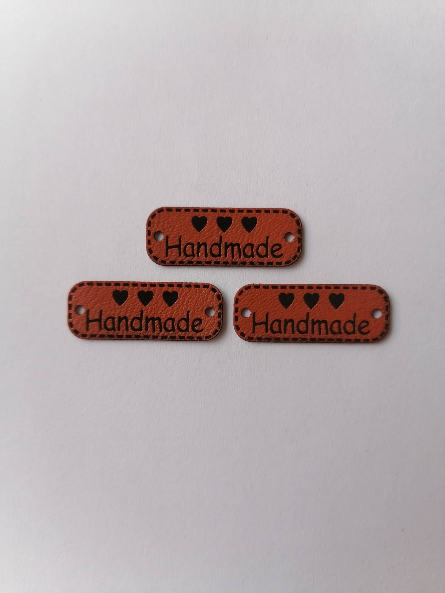 Štítok Ekokoža 3x1cm Handmade(srdiečka) - hnedýSkladom 29 ks0,30 €/ ks