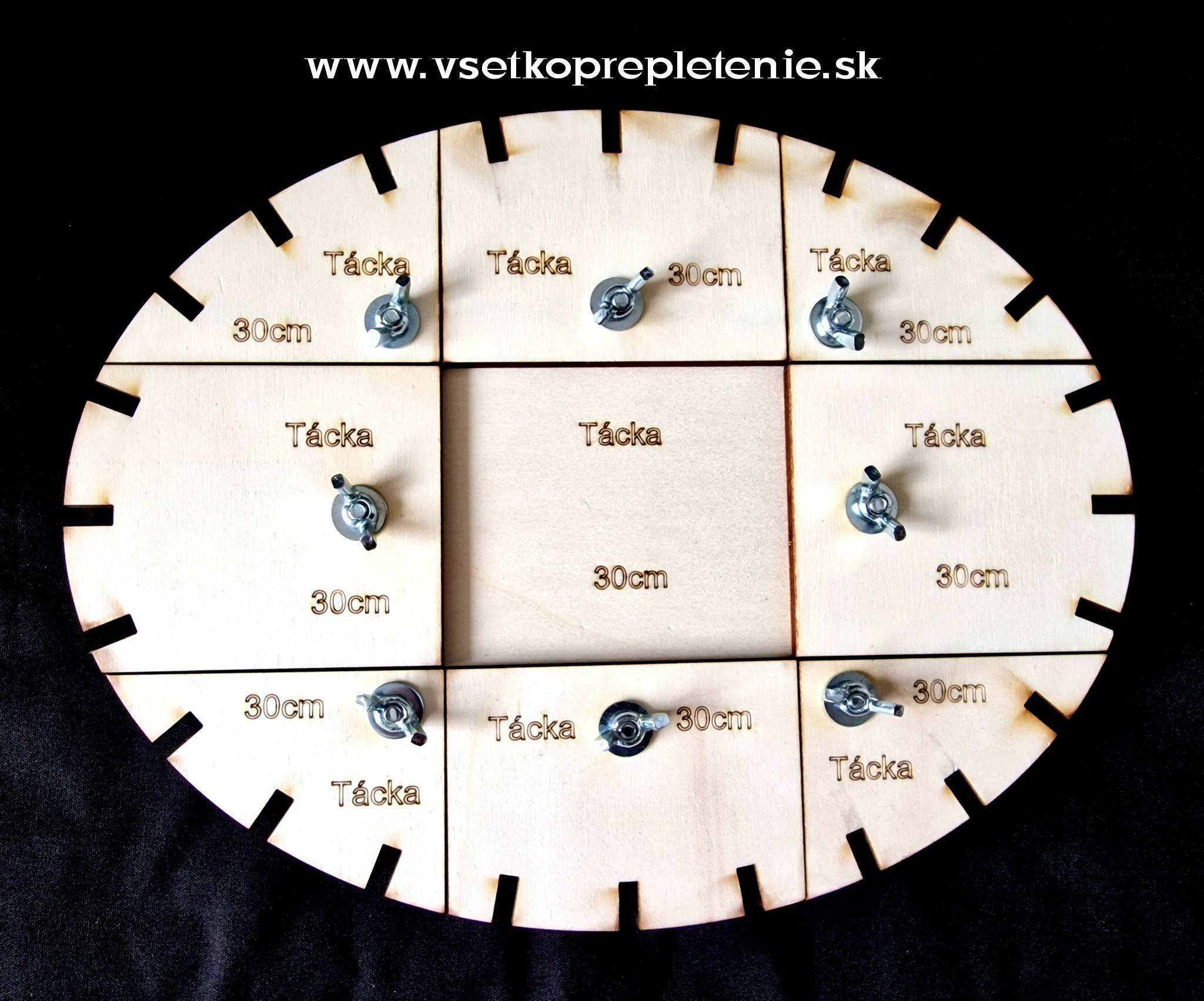 Základné dosky na formu - Tácka elipsa 30cm, má základý elipsový tvar o rozmeroch 29x22cm. Pokial máte zakúpenu formu kruhová tácka 30cm alebo obdĺžniková tácka 30cm a chcete pliesť aj elipsovú tácku stačí Vám zakúpiť len tieto základné dosky. Základné dosky sú konštruované tak, aby Vám pasovali bočné lamely z kruhovej tácky 30cm alebo obdĺžniková tácka 30cm. Majú ten istý počet lamiel ako kruhová tácka alebo obdĺžniková tácka.Táto forma môže slúžiť ako krásna dekorácia so živými alebo umelými kvetmi, tácka na ovocie, servírovacia tácka. Výška formy v najvyšom bode je 9cm .