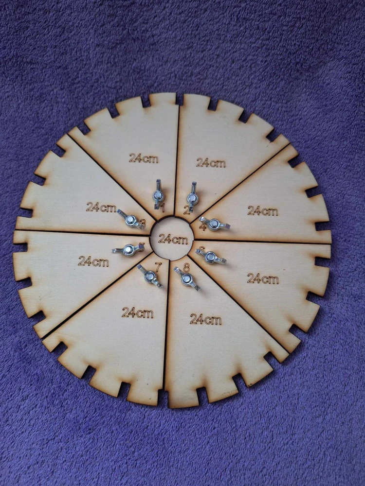 Základové dosky 24cm sa používajú na vytvorenie formy ktorá pasuje do kruhových dien 24cm. Lišty sú samostatná položka, aby si každý vedel zakúpiť takú veľkosť kruhov ako mu vyhovuje. Pokial chcete robiť zošikmené steny, stačí dať dno 24cm a pokial máte zakúpené základové kruhy 26cm môžete dosiahnuť zošikmené boky.